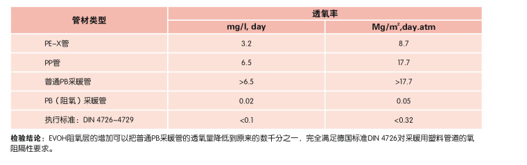 几种聚烯烃单管和阻氧(PB)采暖管的渗氧性比较